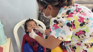Também foi montado um espaço para que as crianças pudessem pintar, e elas ainda ganharam pipoca e guloseimas. As famílias aprovaram a ação. “Foi um atendimento muito bom, as pessoas foram muito legais, atenderam ele muito bem. Ele passou pelo dentista, pelo médico, e agora vai tomar vacina”, disse dona Raimunda Paiva, que levou o netinho para se consultar.